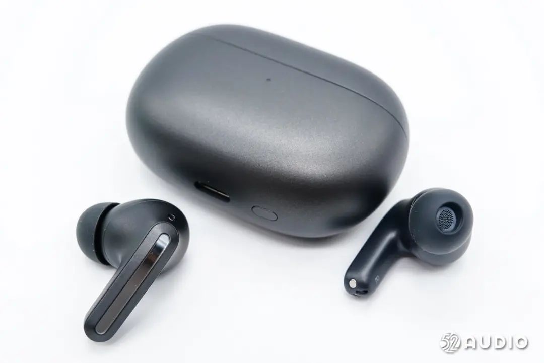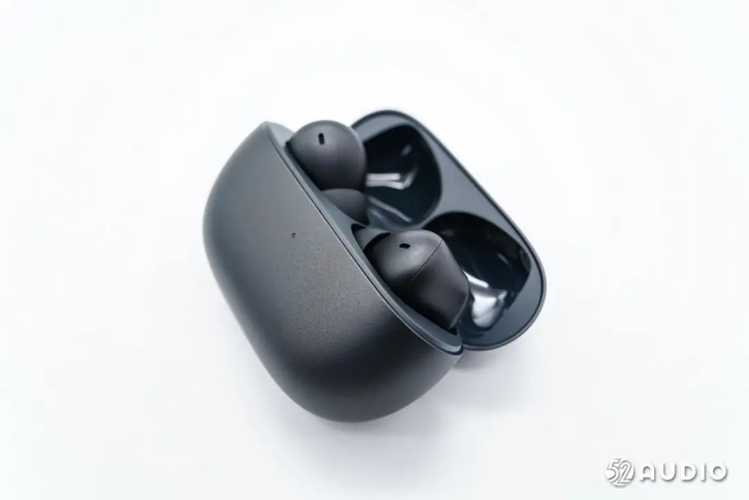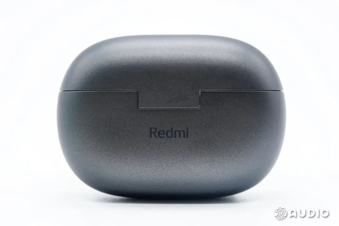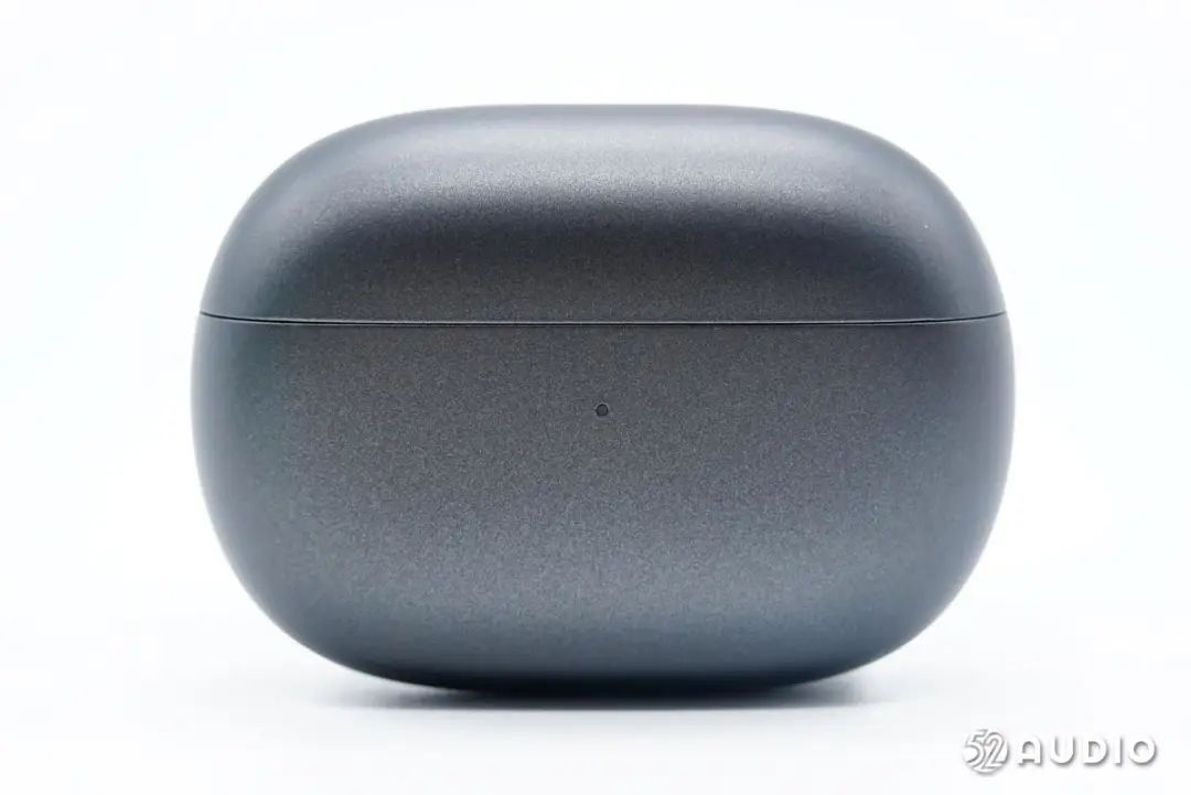 Redmi Buds 4 Pro充电盒采用了椭圆形设计,此款极夜黑配色为磨砂质感,正面设计有一颗指示灯,用于反馈蓝牙配对状态和电量信息。
