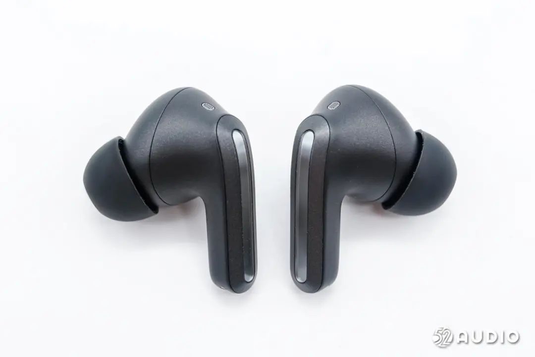 耳机柄短小,背部采用了斜面设计,中间顺利获得不同材质的装饰片点缀,上半部分为触控区域,用于耳机的便捷控制。