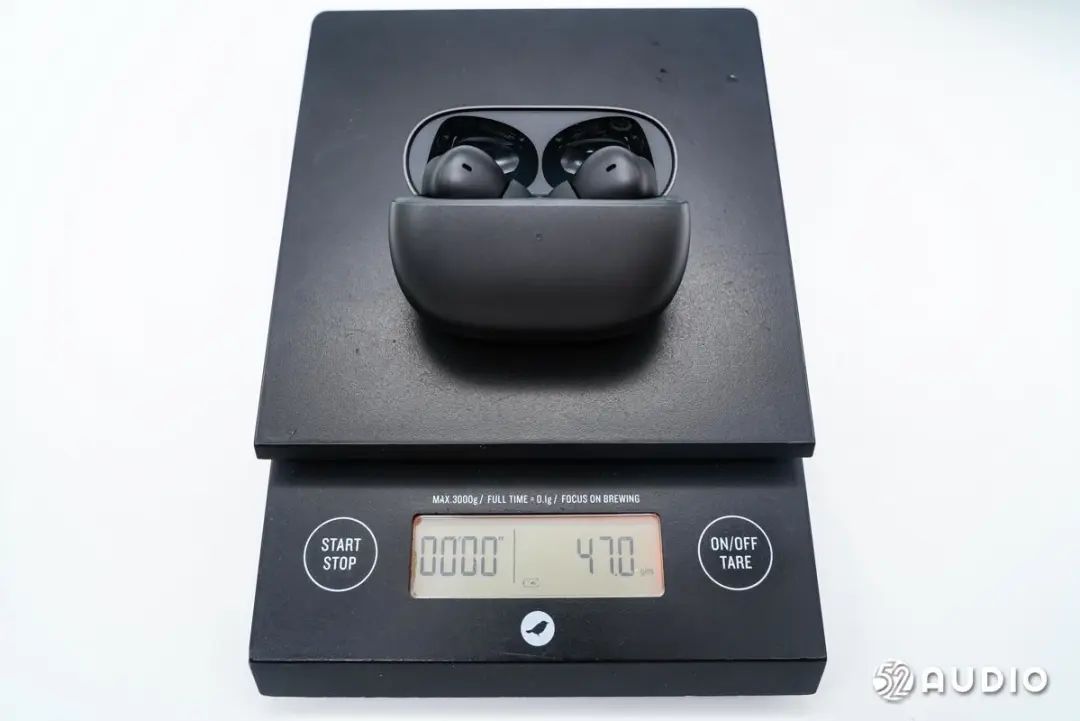 经我爱音频网实测,Redmi Buds 4 Pro真无线降噪耳机整体重量约为47.0g。
