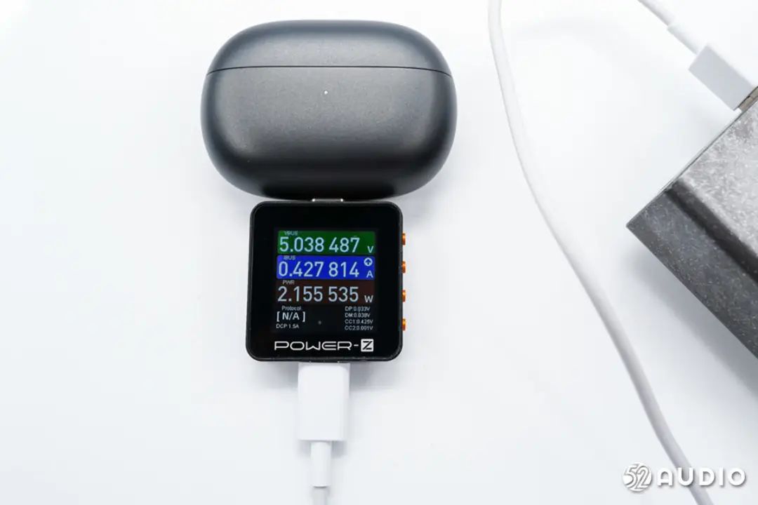 我爱音频网采用CHARGERLAB POWER-Z KM002C对Redmi Buds 4 Pro真无线降噪耳机进行有线充电测试,输入功率约为2.16W。