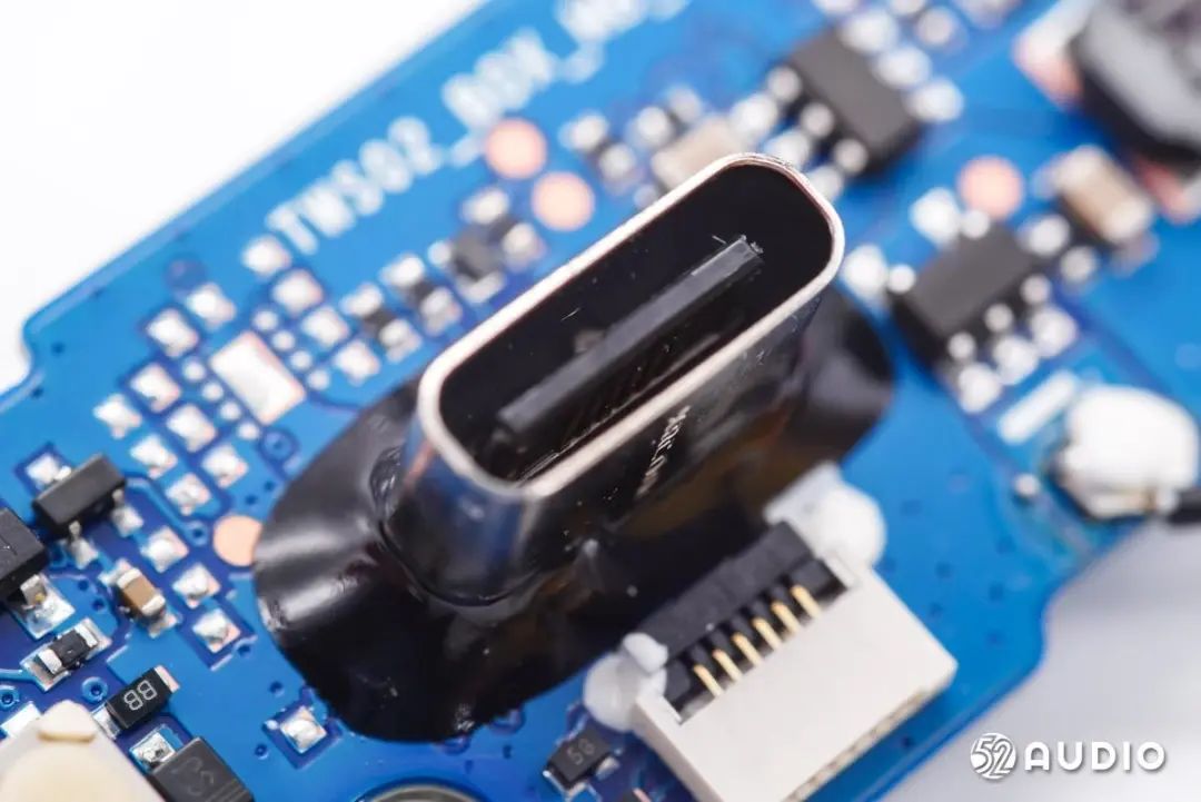 Type-C充电接口母座特写,底部黑色硬质胶水防护。