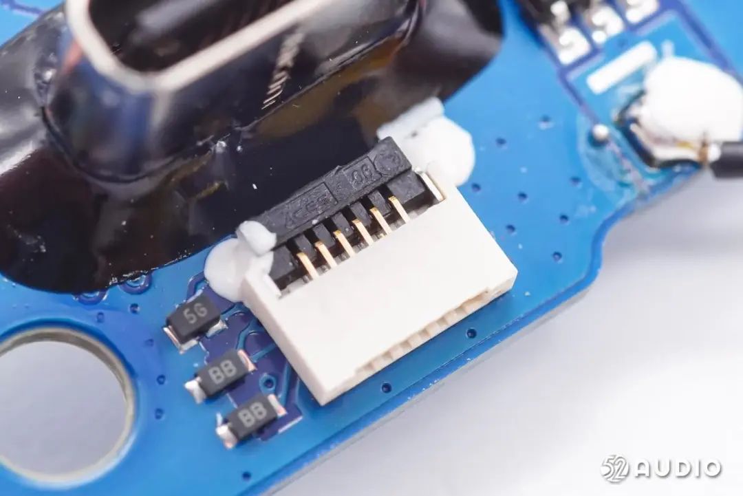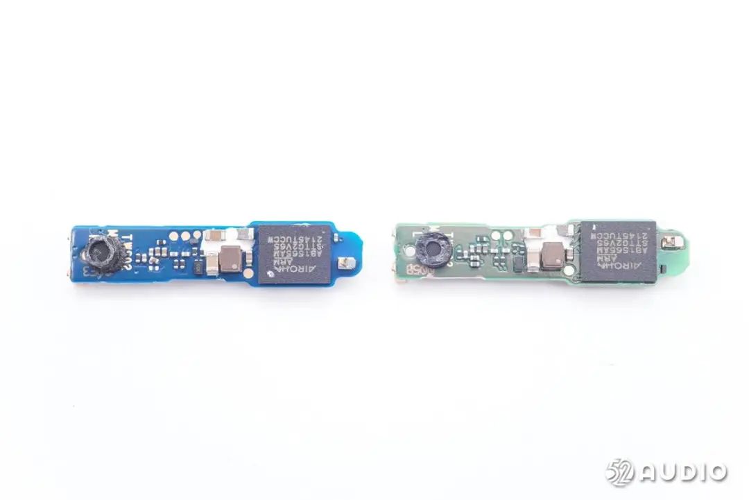 左右耳机内部主板采用了蓝色和绿色两种配色,便于工厂组装区分。