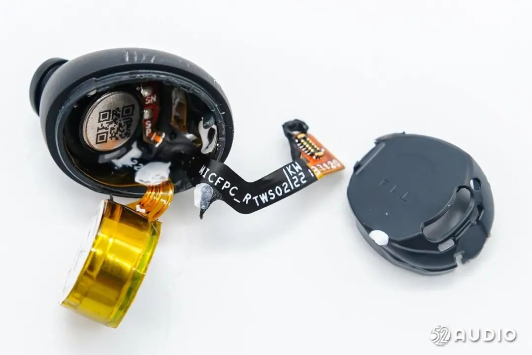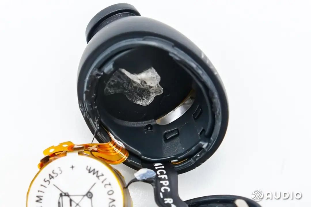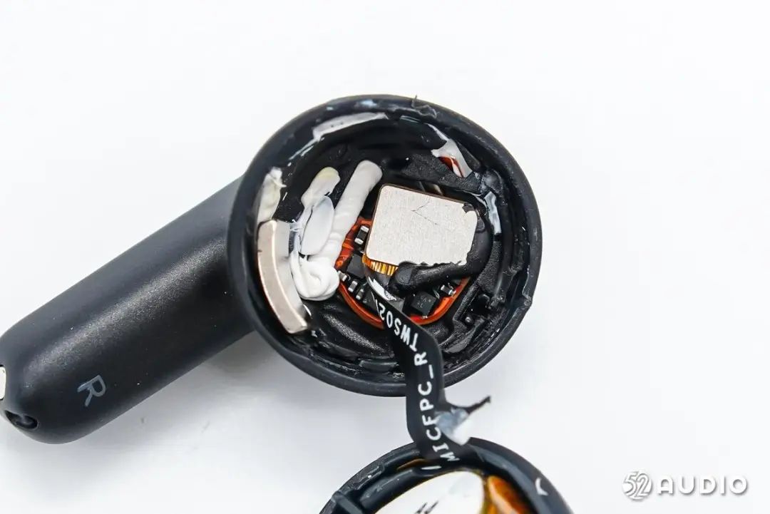 进入耳机拆解部分,撬开耳机头,腔体内部结构一览。