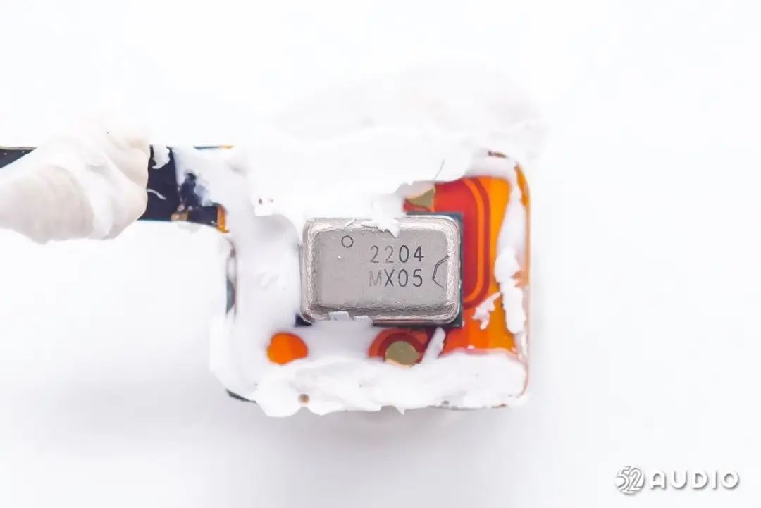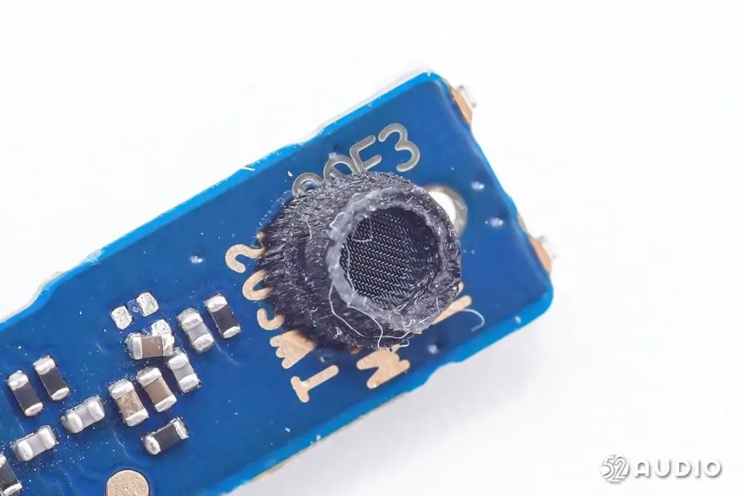 镭雕2204 MX05的MEMS前馈降噪麦克风特写,用于拾取外部环境噪音,同样来自绿色版888集团电子。